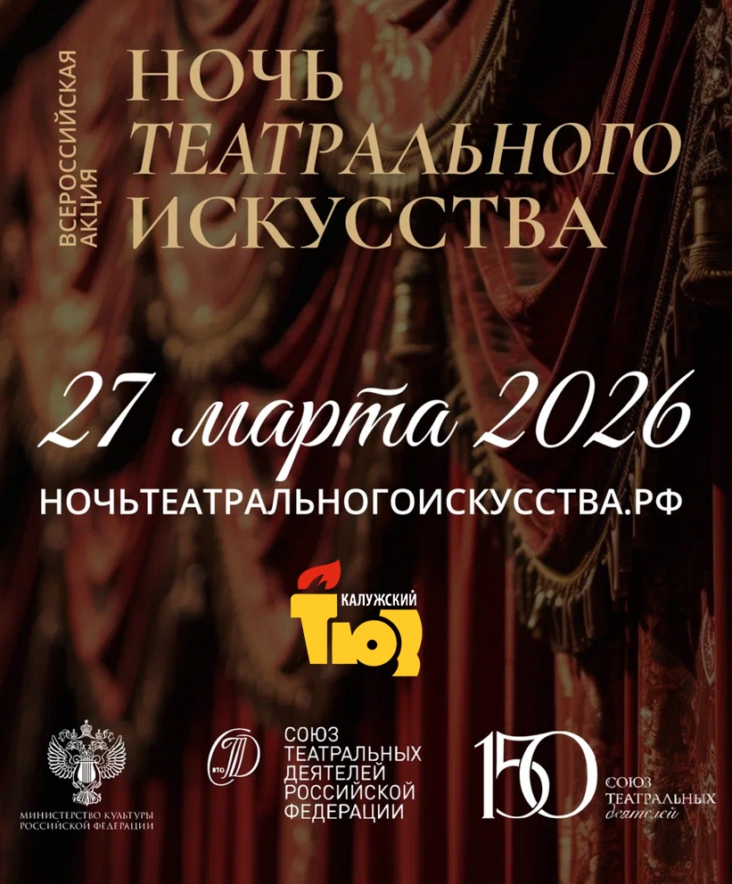 Калужский ТЮЗ принимает участие во Всероссийской акции «Ночь театрального искусства», посвящённой 150-летию Союза театральных деятелей России. Приглашаем любителей театра на квартирник, который состоится 27 марта в 22.00 в Малом зале ТЮЗа.