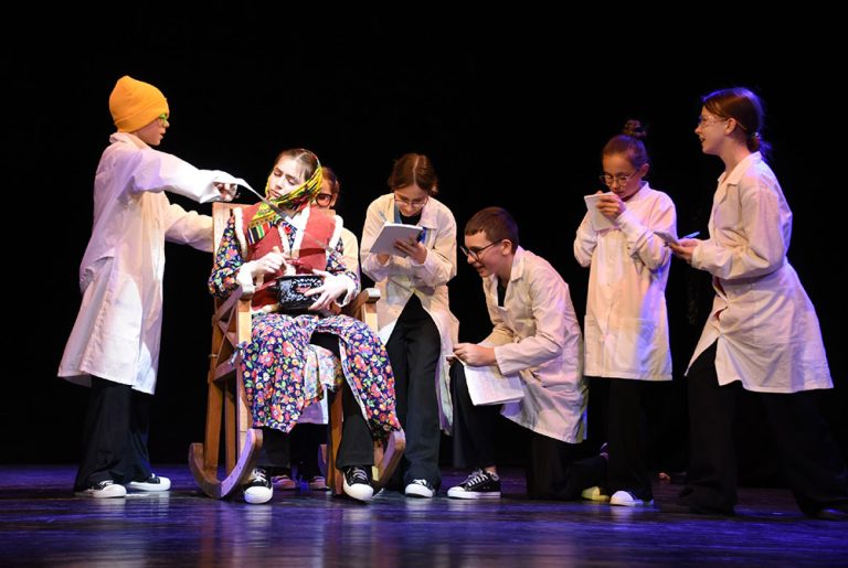 Ребята из театральной студии Калужского ТЮЗа «НеВзрослый театр» под руководством Елены Баландиной вместе со взрослыми актёрами представили зрителям три мини-спектакля — «12 сов», «Что скрывают бабушки» и «Маша, Миша и говорящая рыба».